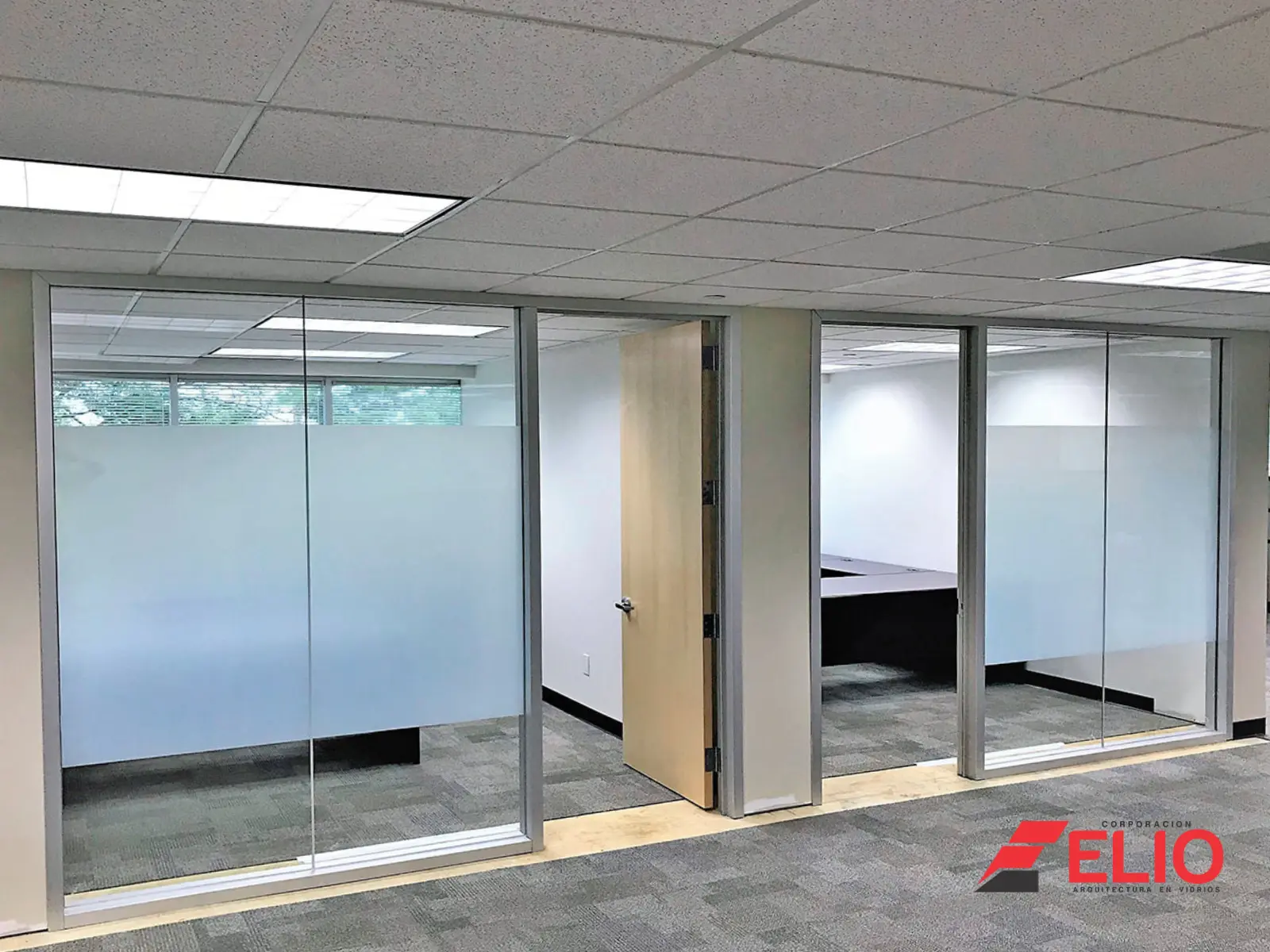 Estos acabados en vidrio satinado ofrecen una apariencia sofisticada y moderna, siendo ampliamente utilizados en proyectos de diseño interior, oficinas, viviendas, locales comerciales y consultorios.